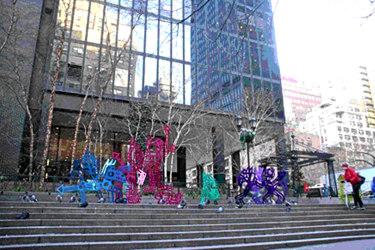 Sculpture Installation: Horsing Around the Arrows of Time, Dag Hammarskjold Plaza, New York City